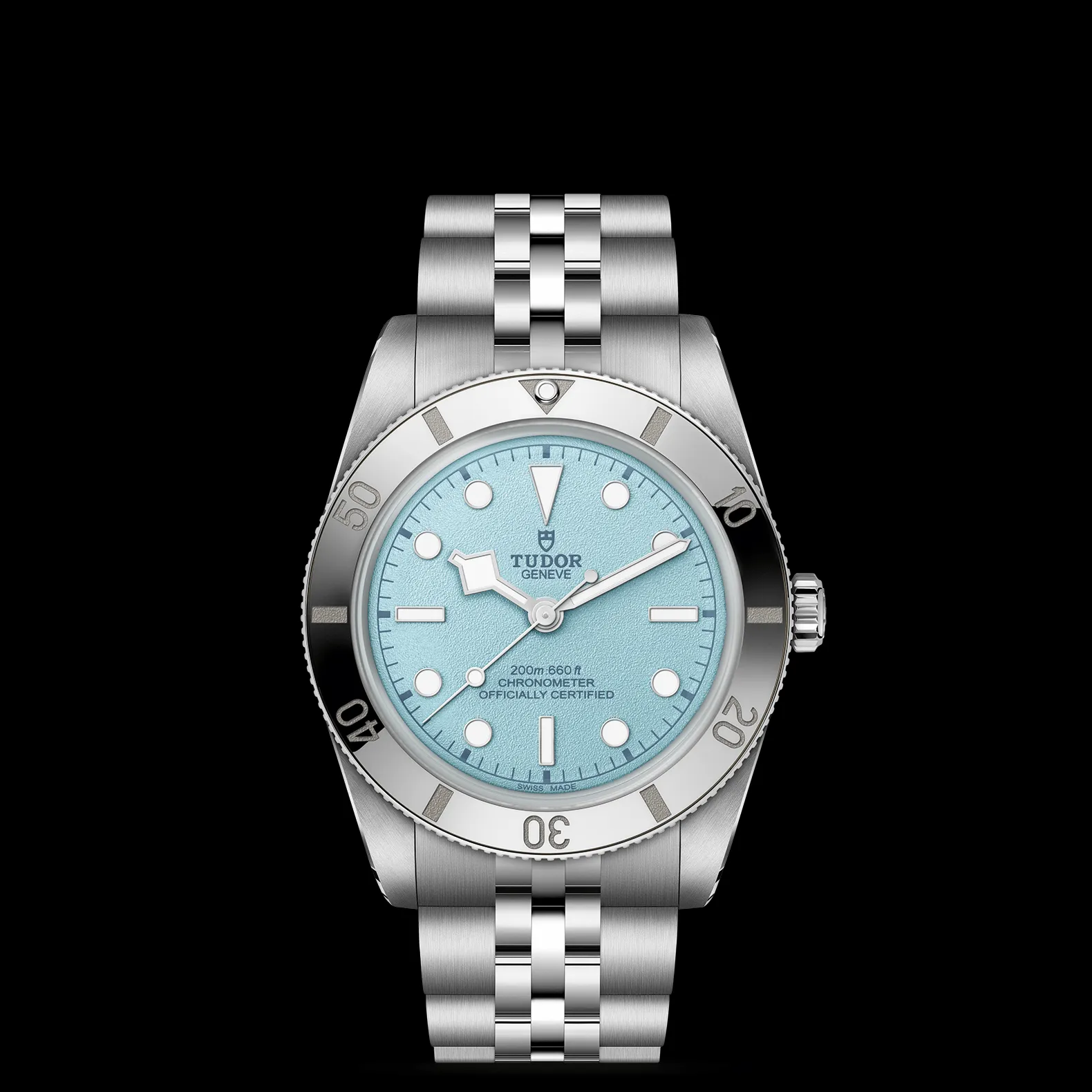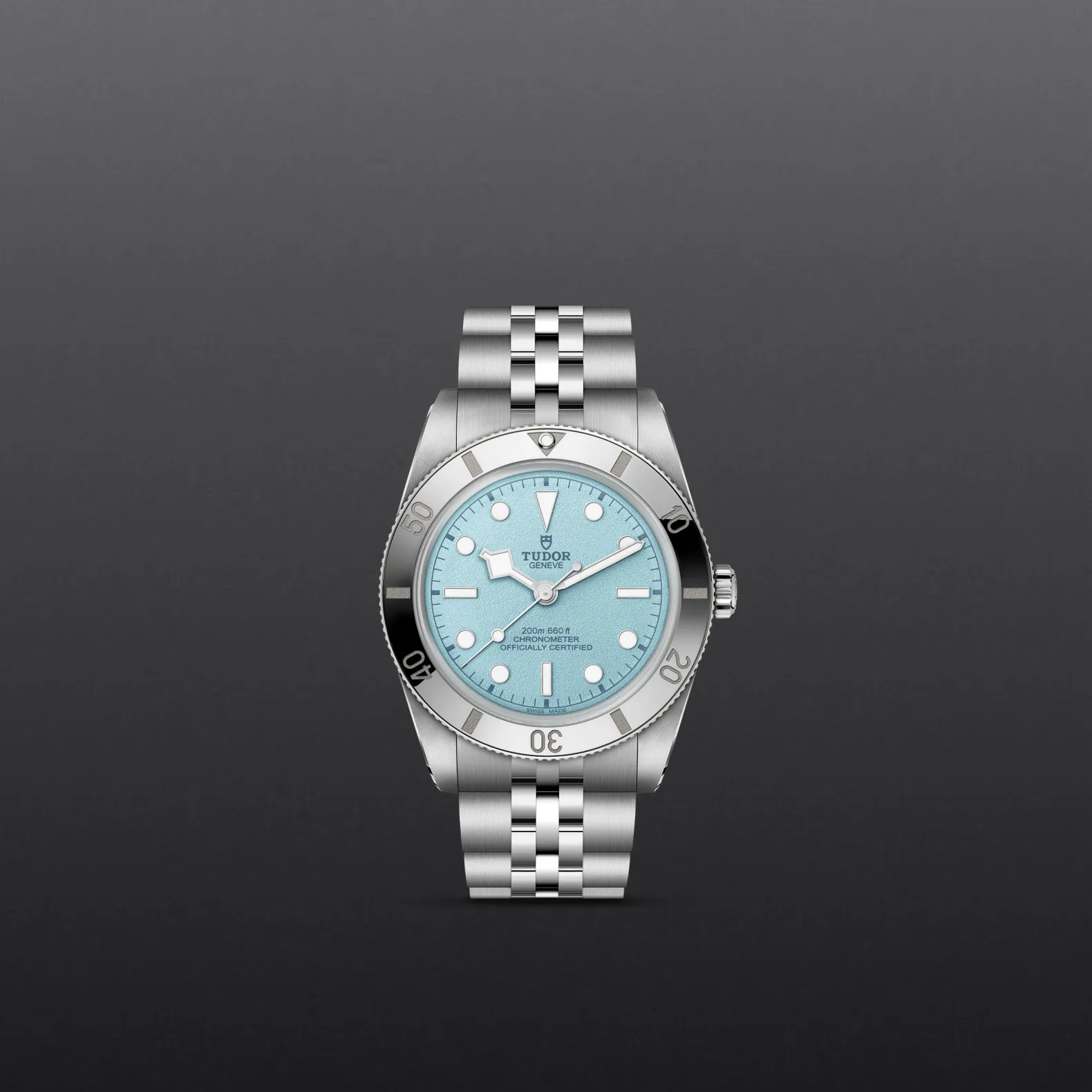 El Black Bay 54 es el ejemplo más fiel del primer reloj de submarinismo de TUDOR, la referencia 7922. La caja de 37 mm mantiene las proporciones clásicas de antaño y aun así posee la proeza técnica del Calibre de Manufactura MT5400 de TUDOR y un grado de profundidad de 200 m. Una versión especial apodada «Lagoon Blue» está inspirada en el color de los océanos tropicales y cuenta con una esfera «Lagoon Blue» texturizada con arena, un brazalete de cinco eslabones y un bisel con pulido espejo.