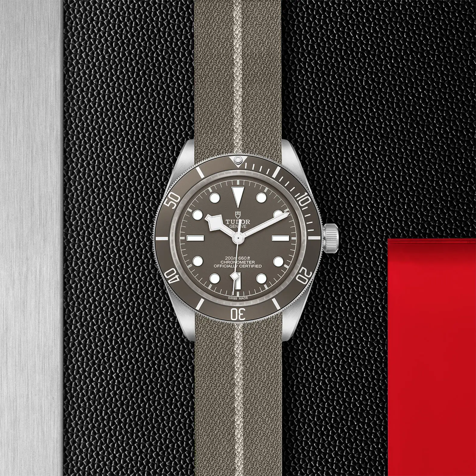 El Black Bay 58 recibe su nombre del primer reloj de submarinismo TUDOR hermético hasta una profundidad de 200 m, la referencia 7924, presentado en 1958. Conocido como «Big Crown» por los coleccionistas, el diseño del Black Bay 58 hace referencias estéticas a este modelo histórico. Este año, una ejecución burdeos con certificación Master Chronometer otorgada por el METAS se une a la familia Black Bay 58. Esta es la primera vez que el modelo está disponible con un brazalete de acero inoxidable de 5 eslabones.