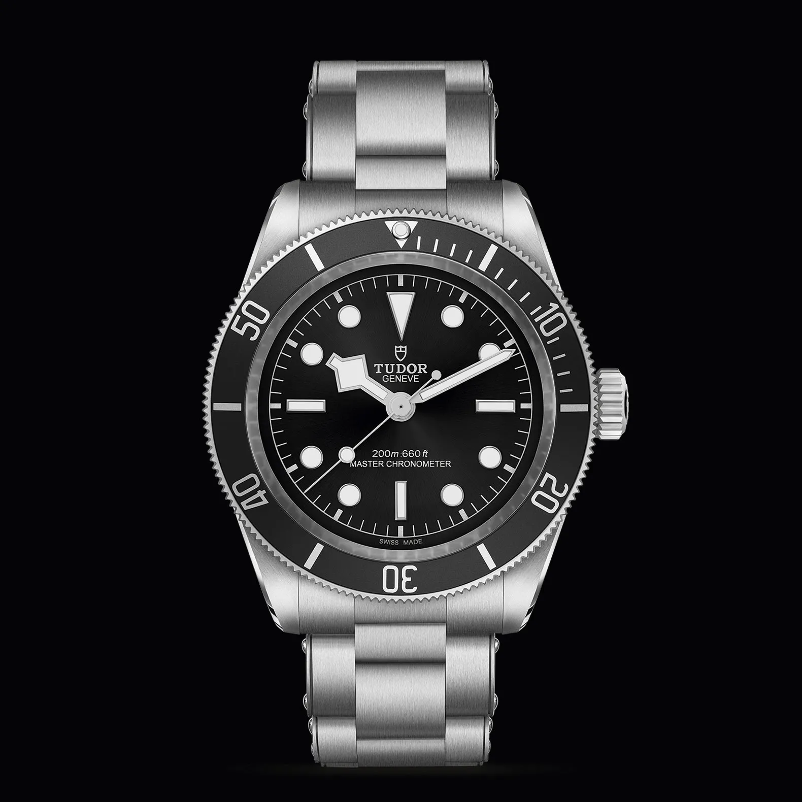 El Black Bay conmemora el 70.° aniversario de los relojes de submarinismo con una tradición extraordinaria. El icónico modelo hereda las líneas generales, así como el cristal y la esfera abombados de los primeros relojes de submarinismo TUDOR. Las agujas, con una forma angulosa muy característica, conocidas con el nombre de agujas «Snowflake», provienen de los relojes entregados a gran escala a la Marina francesa en la década de 1970. En 2024, la línea Black Bay se desplegó con la llegada de un nuevo modelo certificado por el METAS a TUDOR con una estética monocromática.