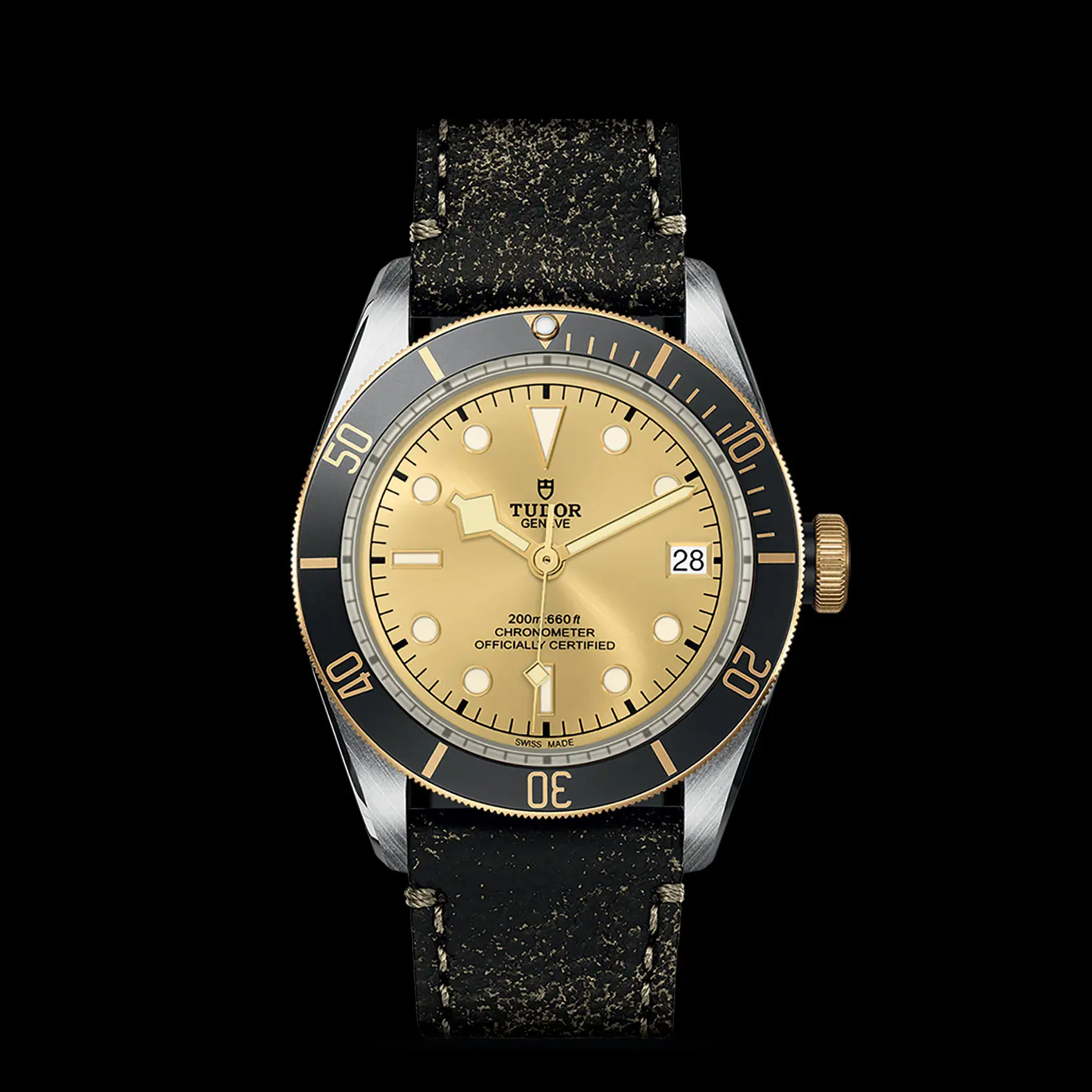 El Black Bay conmemora el 70.° aniversario de los relojes de submarinismo con una tradición extraordinaria. El icónico modelo hereda las líneas generales, así como el cristal y la esfera abombados de los primeros relojes de submarinismo TUDOR. Las agujas, con una forma angulosa muy característica, conocidas con el nombre de agujas «Snowflake», provienen de los relojes entregados a gran escala a la Marina francesa en la década de 1970. En 2024, la línea Black Bay se desplegó con la llegada de un nuevo modelo certificado por el METAS a TUDOR con una estética monocromática.